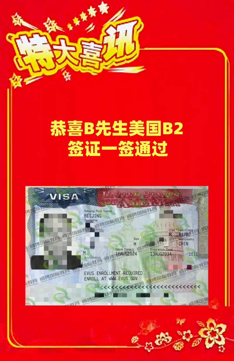 恭喜B先生美国B2签证一签顺利通过 - 北京睿搏国际官方网站---十五年专业办理美国签证拒签再签,复杂案例翻案,疑难杂症签证问题方案提供商。
